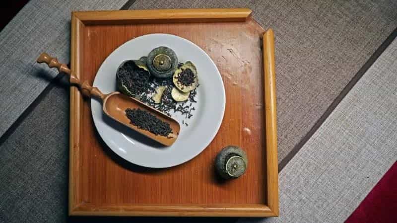 瓷器保存小青柑,必须使干燥、无臭味、清洁后的瓷器,才可将茶叶放进陶器中。