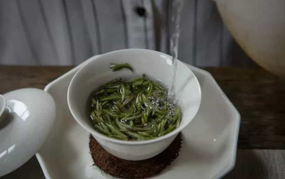 正确的白毫银针注水方式,是环壁注水法。即水从盖碗壁开始,由外向内画圈,均匀的将干茶浸润,从而全面释放白毫银针的香味和滋味。